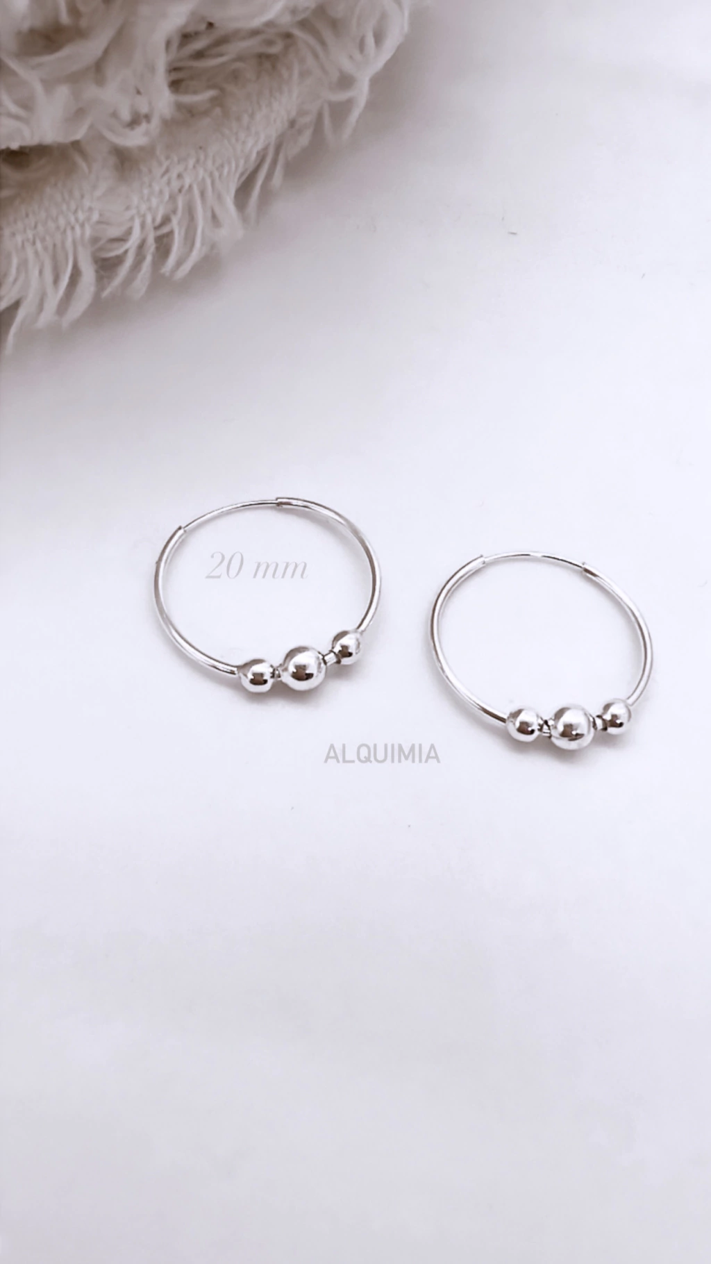 ARGOLLA “3 bolitas”- número 3- 20 mm -sin visagra apertura lateral- PLATA 925 - ( POR PAR)- A.157