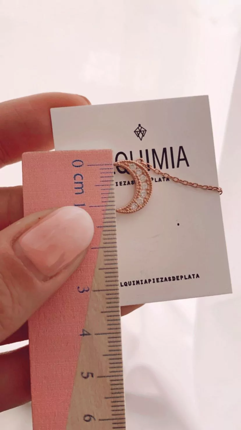ARO ''LUNA'' con piedras- plata rose con cadena pasante y cierre maripoza ( por unidad)- A.018/2-L