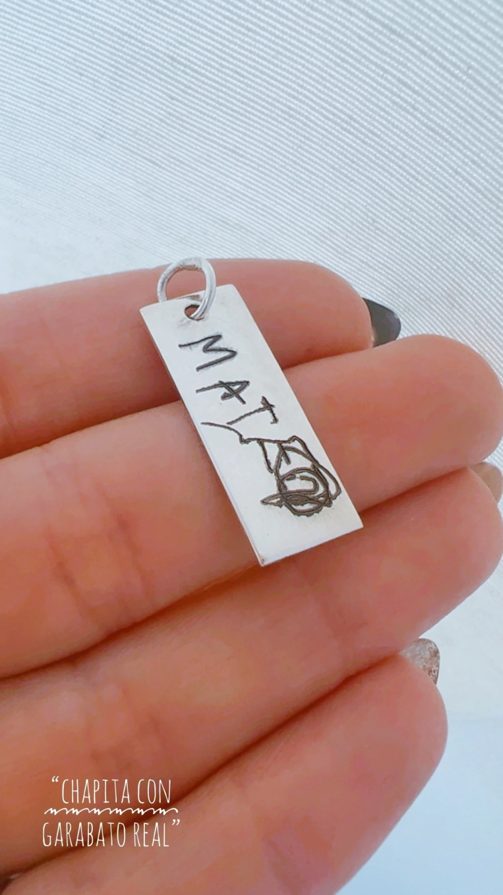 Con un diseño único que incluye una huellita y un garabato o palabra , este colgante simboliza el amor y la conexión con lo que más valoras en la vida. "Es un recordatorio constante de esos momentos y personas que dejan huella en tu corazón."