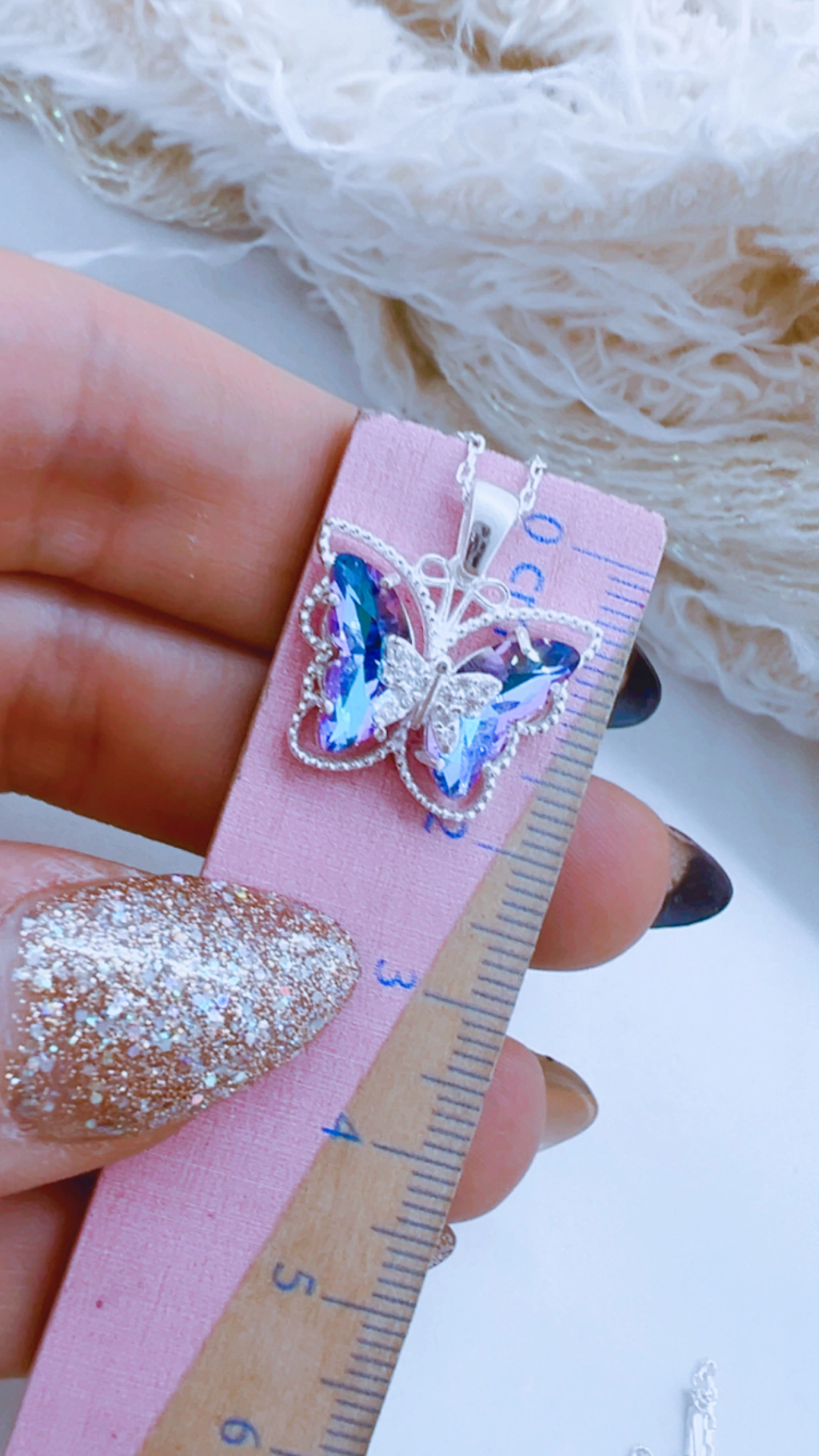 CONJUNTO “ CRYSTAL BUTTERFLY”-crystal meridian blue- 42+ 3 cm de extensión- PLATA 925 PREMIUM- C.062/2