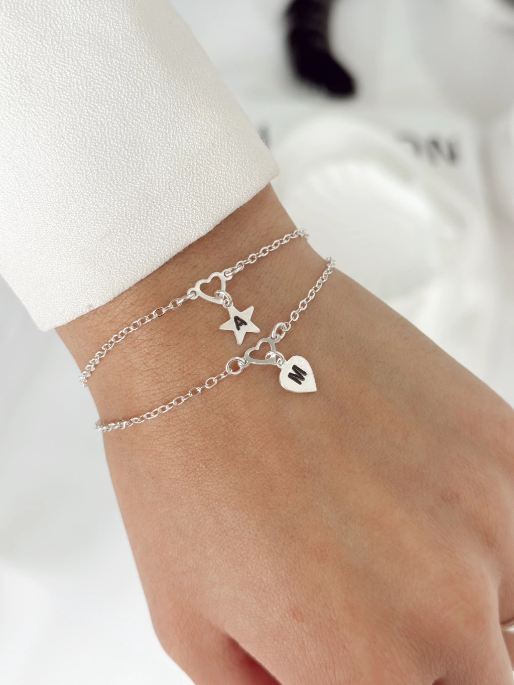 PULSERA “ CLEMEN” personalizada con inicial (a pedido!)- dije corazón- (18 cm + 1 cm de extensión)- corazón o estrella -plata 925- P.025