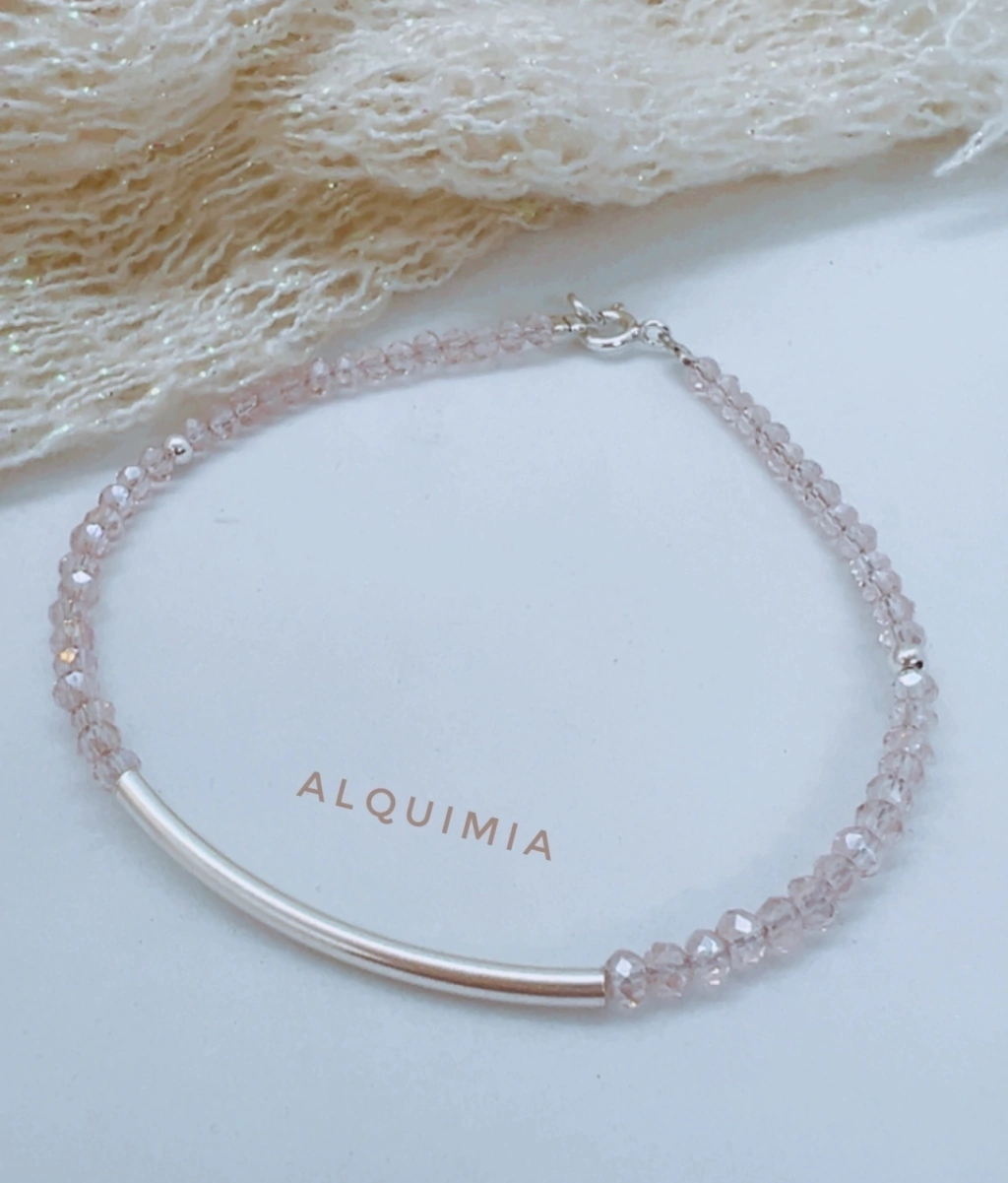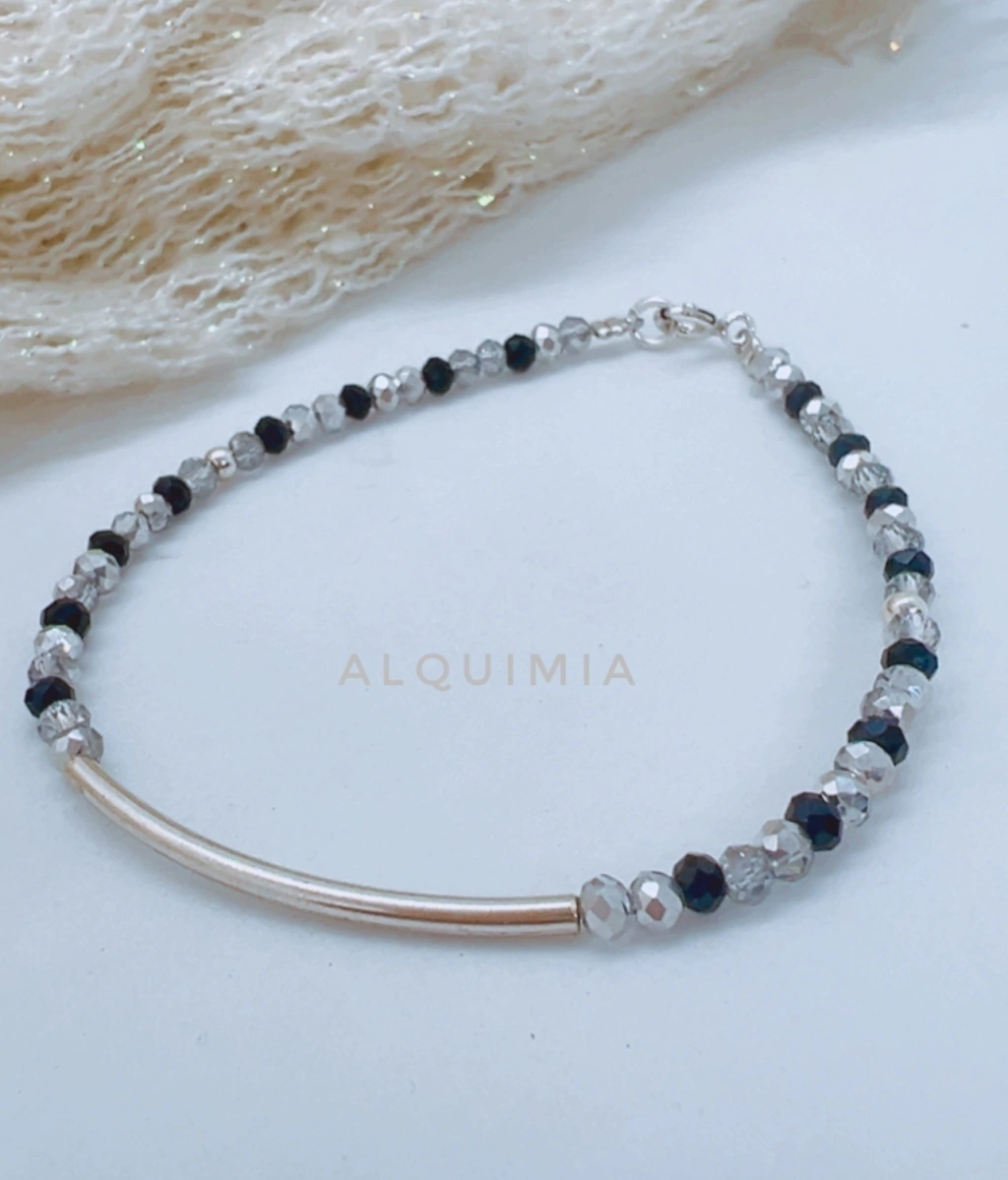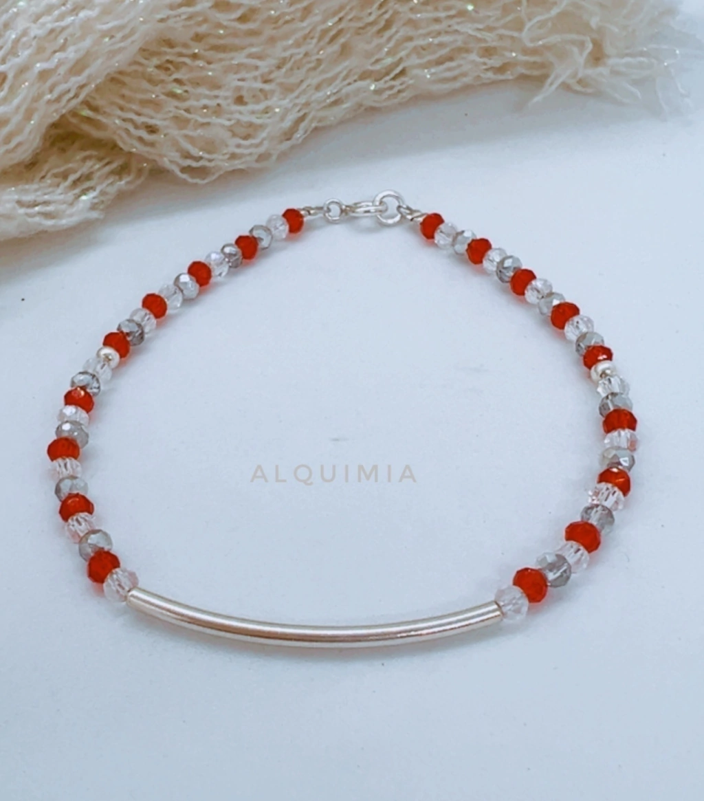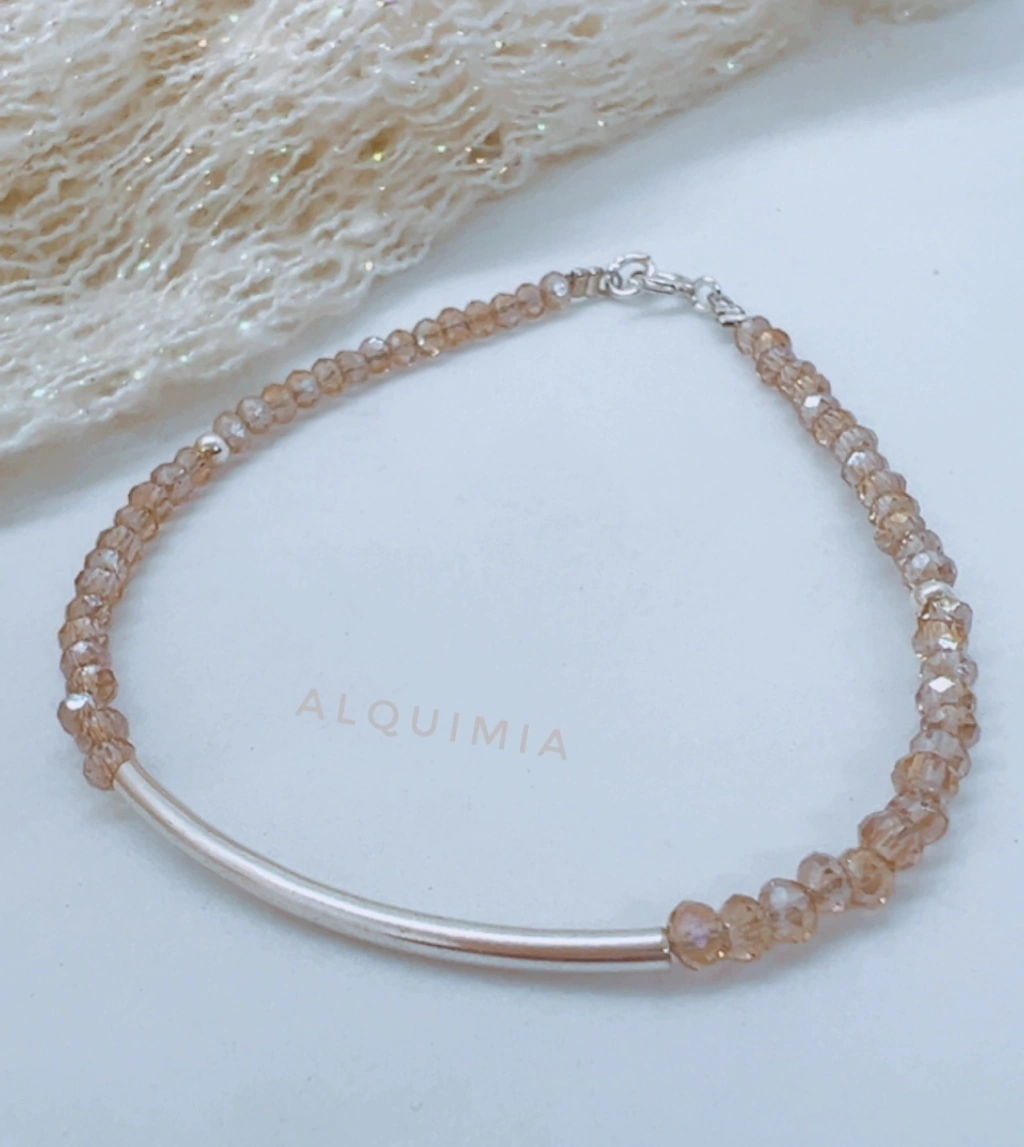 PULSERA CRISTAL CON TUBITO + 1 bolita lateral ( VARIOS COLORES)- 19 cm - PLATA 925 - P.002