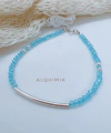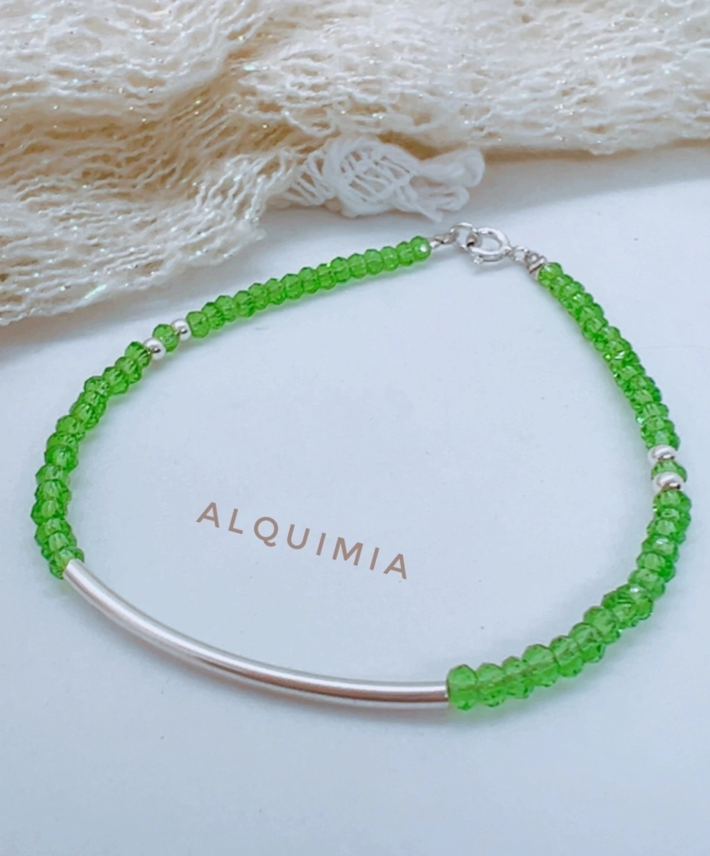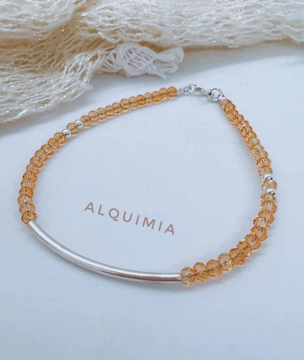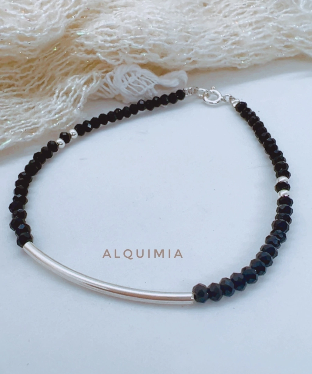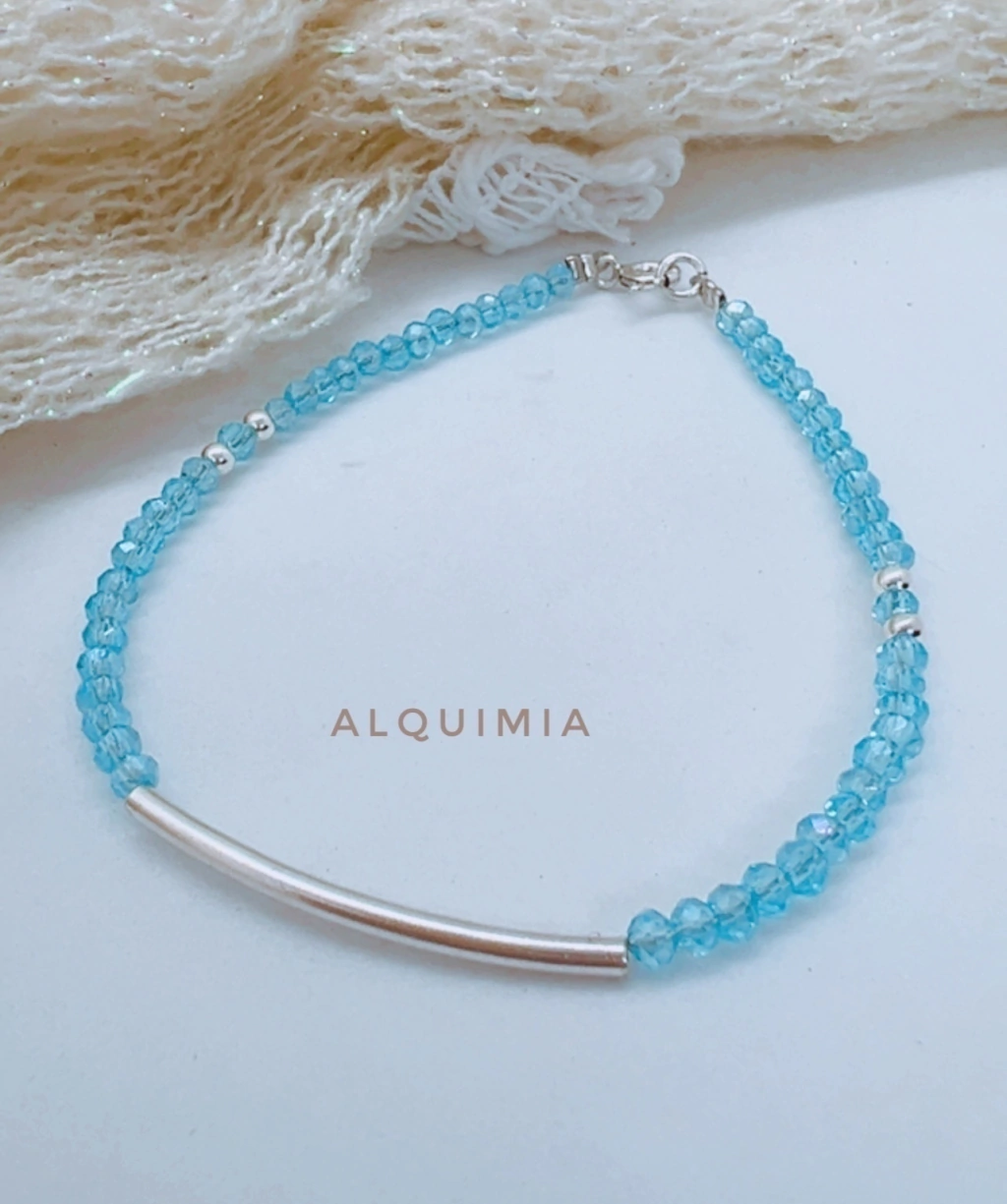 PULSERA CRISTAL CON TUBITO + 2 bolitas laterales - VARIOS COLORES- 19 cm - PLATA 925 - P.004/2