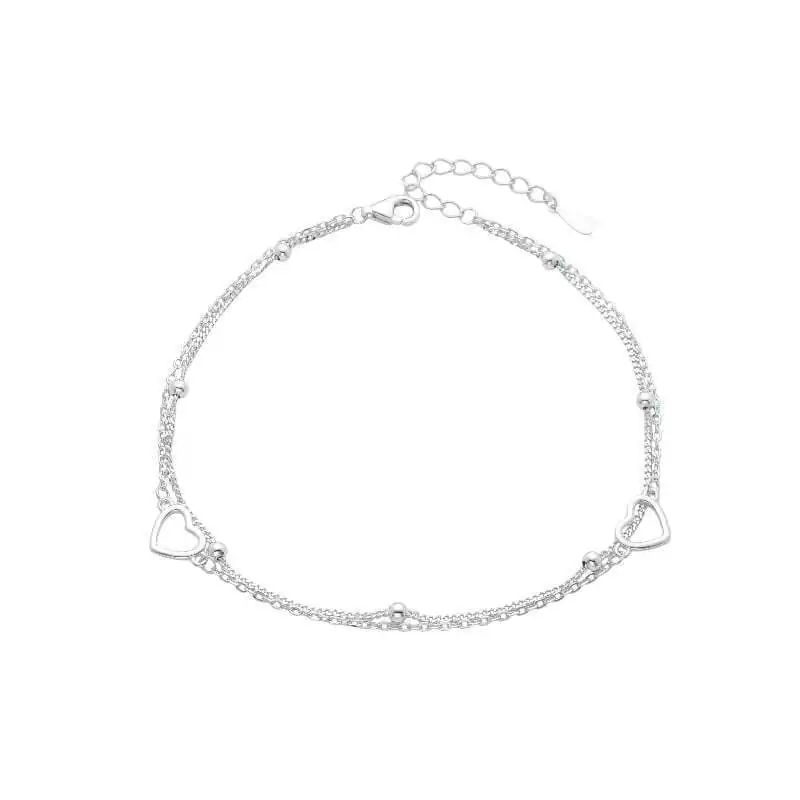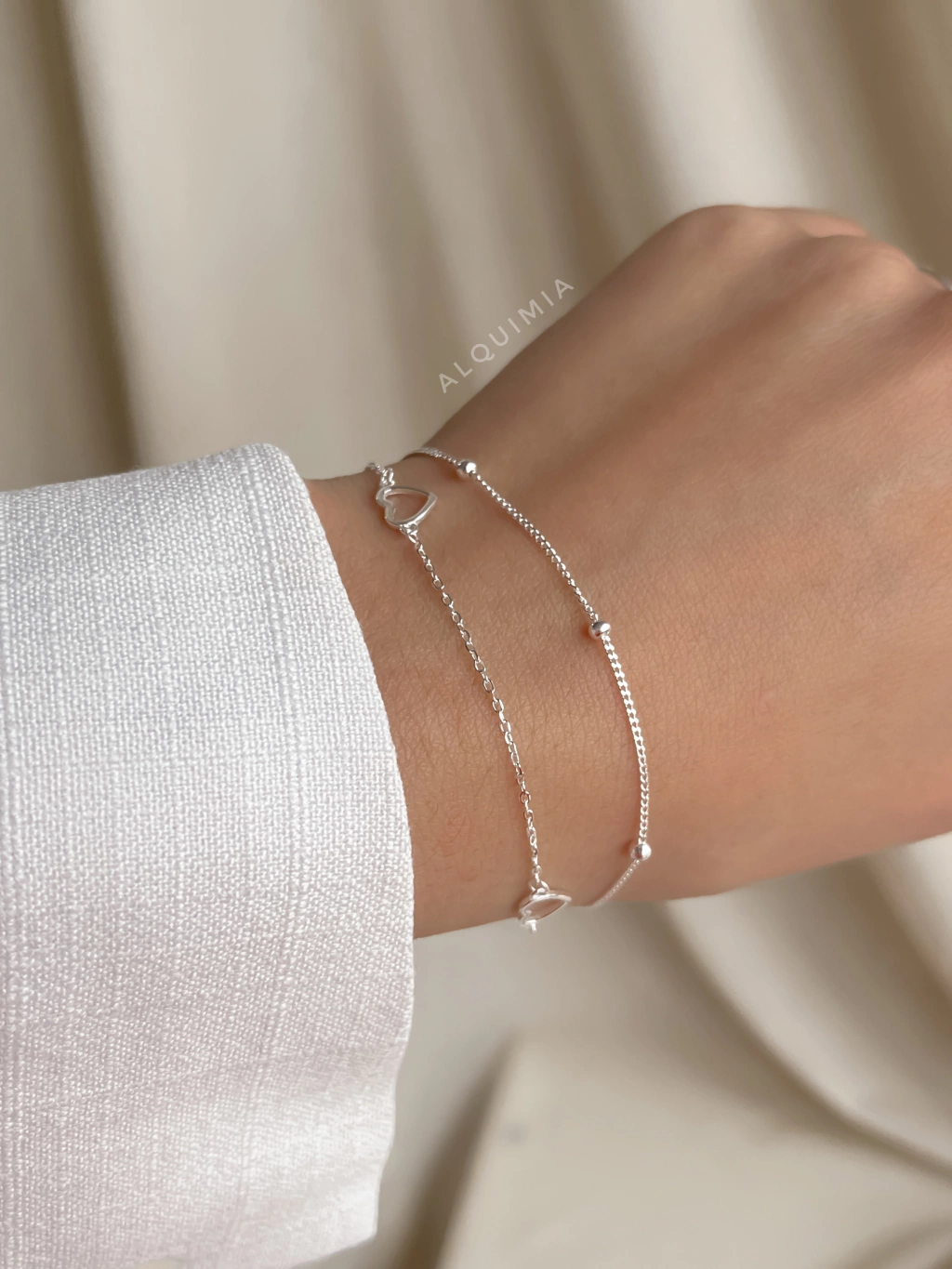 PULSERA “ DUO MIX CON CORAZONES”- PLATA 925- 17 cm + 3 cm de extensión- P.040