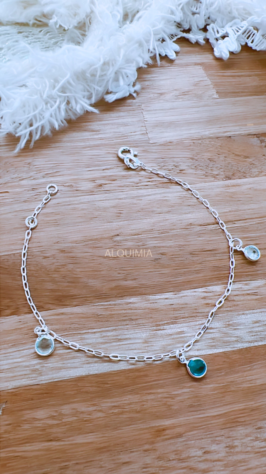 PULSERA “MALDIVAS” puntos de luz aqua crystal- 19 cm de largo -plata 925- P.015/2