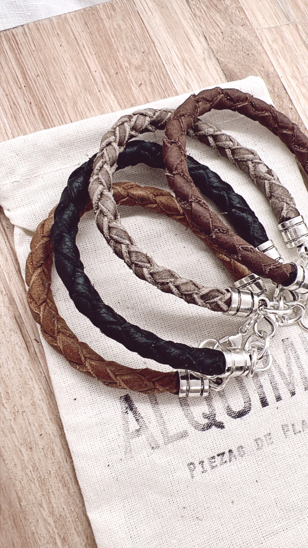 PULSERA “TRENZA” cuero 100% con teminales de fundición- P.032/2